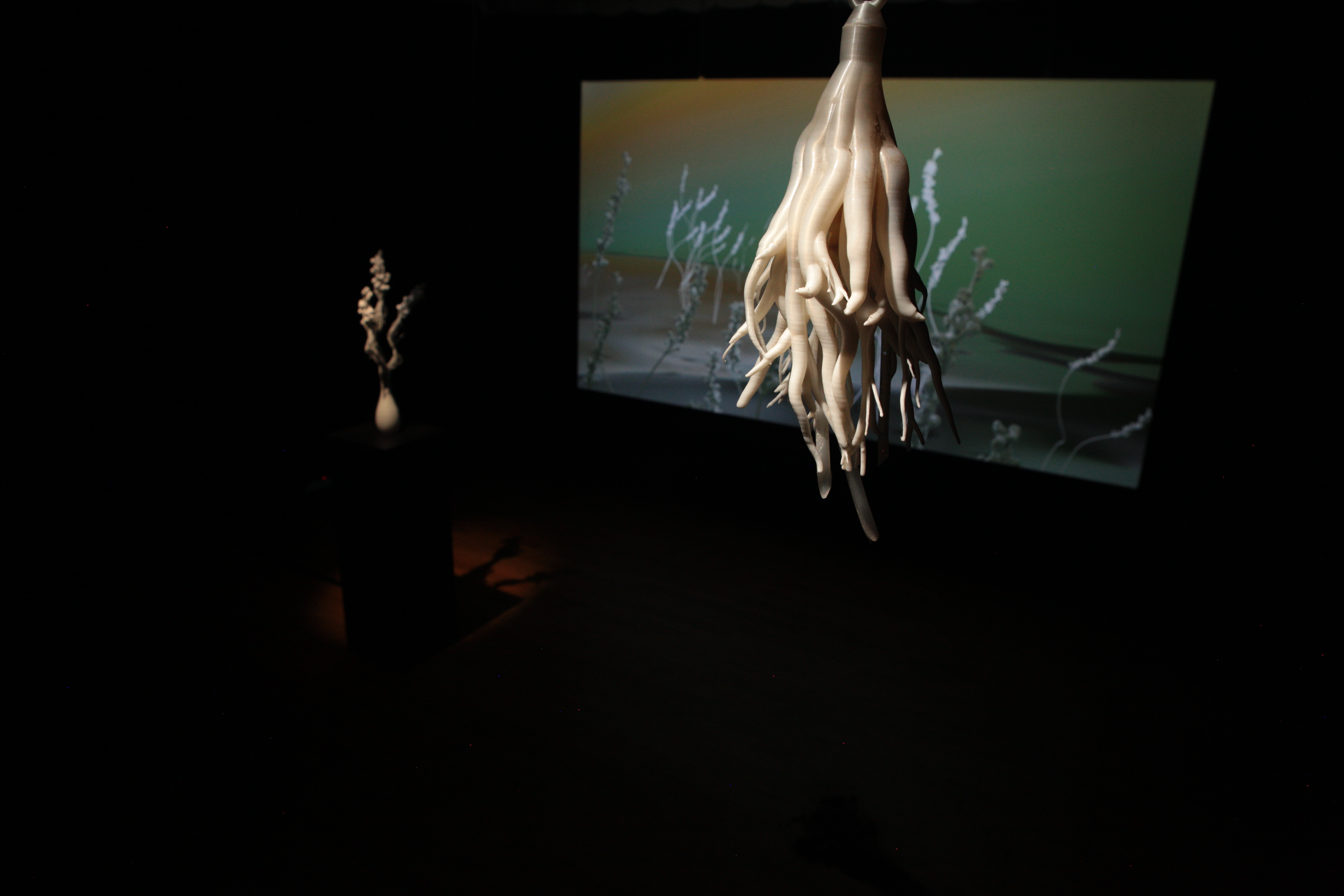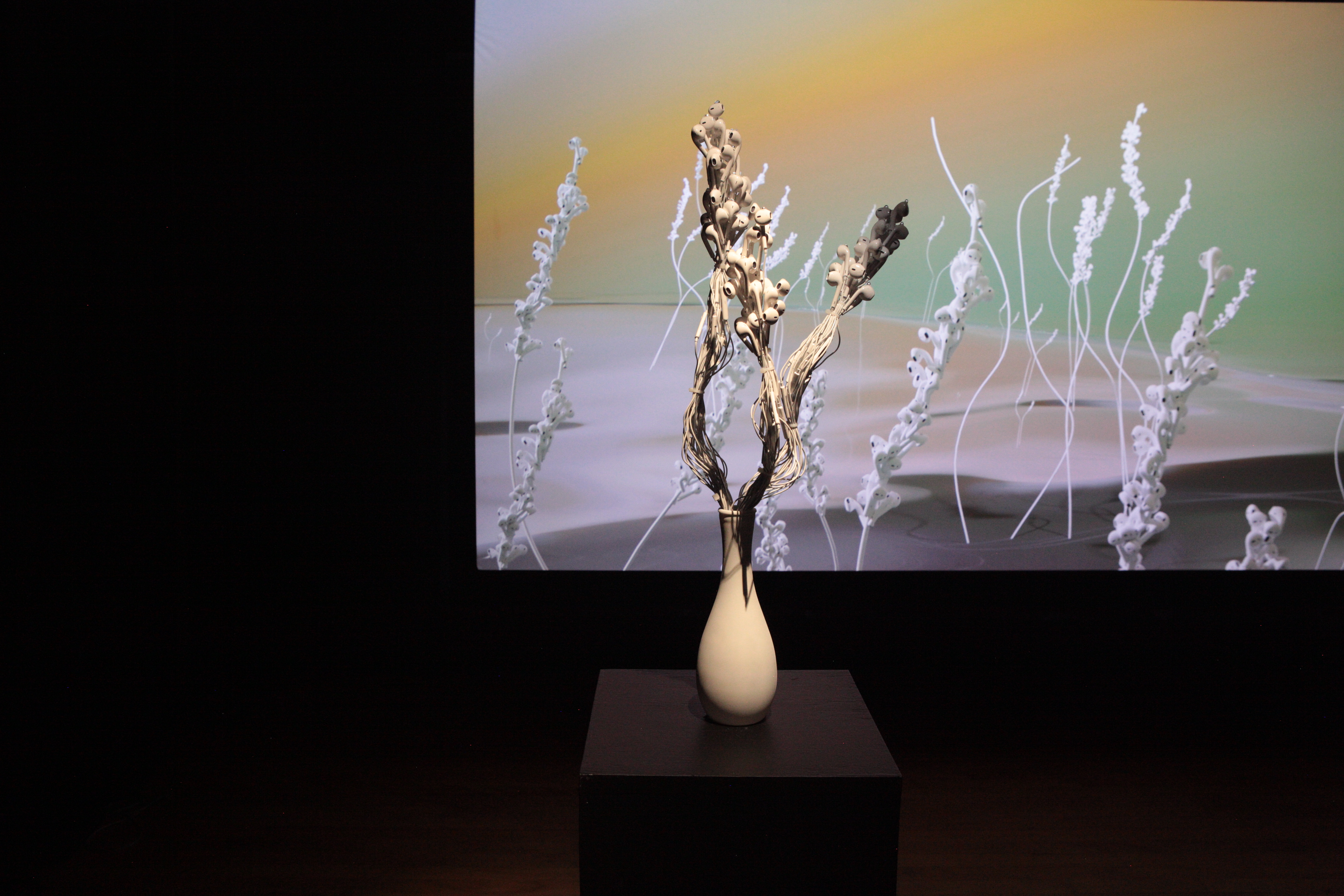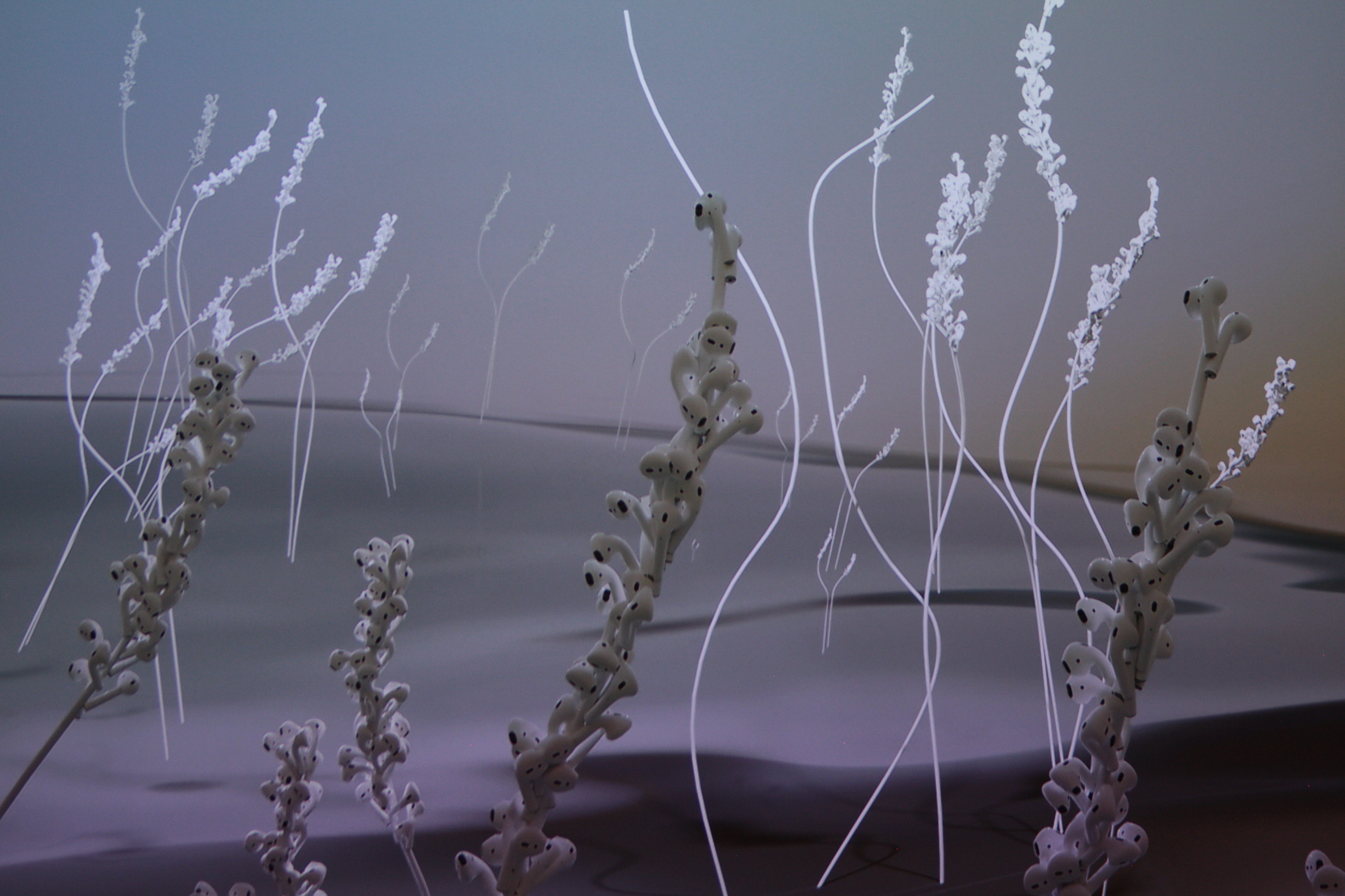 Ancillary Glow proposes a collection of hybrid still lifes: virtual and physical assemblages of abstract forms, technological artifacts and inorganic textures. It explores the concept of “vibrant matter”, the affordances of different materials, living and non-living, and their potential for shifting between states of becoming.