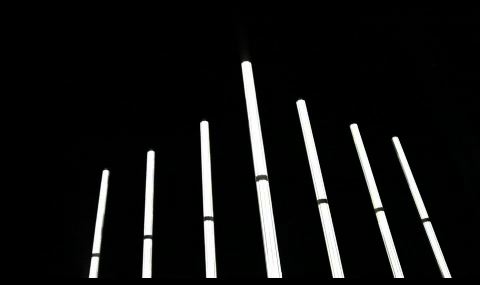 ANTI CHAMBRE is an audiovisual installation and performance for a variable number of two meter long fluorescent tubes replicas. For this project, we were interested in working with unconventional, more tangible projection surfaces. In this case, our ‘screen’ consists of an array of lighting fixtures built by the artists that are dialoguing with, interrupting and masking the projections using, paradoxically, the same medium: light. ANTI CHAMBRE adapts to any space through variable configurations of the tubes and precise video mapping. The visitors are invited to wander among these illuminated geometries.